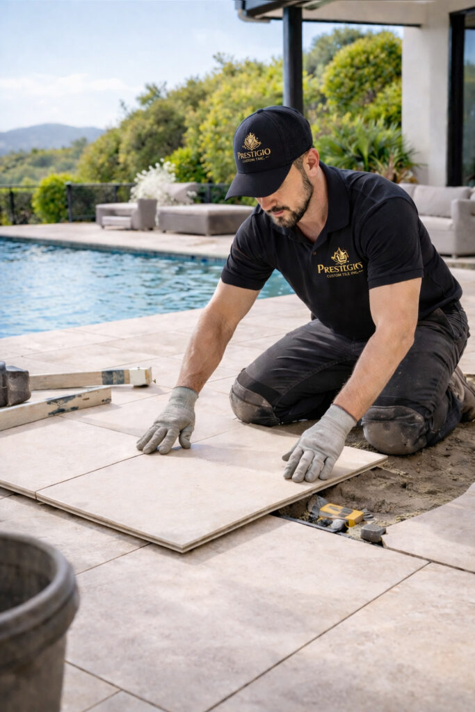 Prestigio Custom Tile Inc. provides professional outdoor and patio tile installation for residential and commercial projects throughout Los Angeles and Southern California. We install exterior tile for patios, walkways, balconies, decks, pool-adjacent spaces, outdoor living areas, and other high-visibility surfaces where durability matters just as much as design.